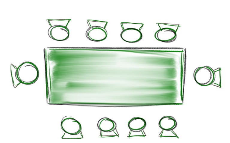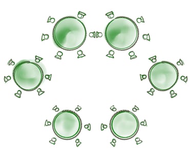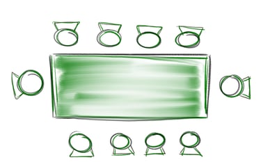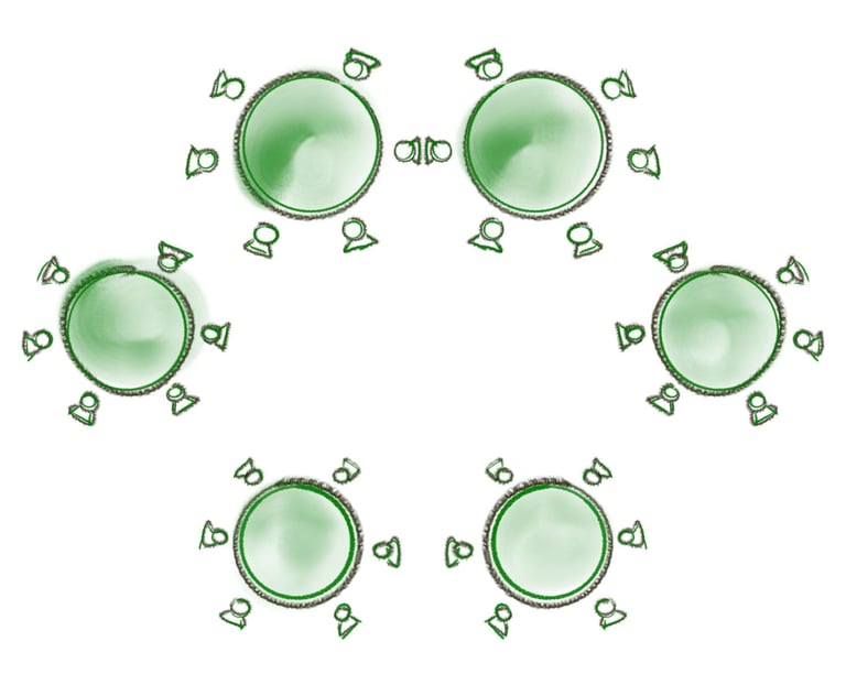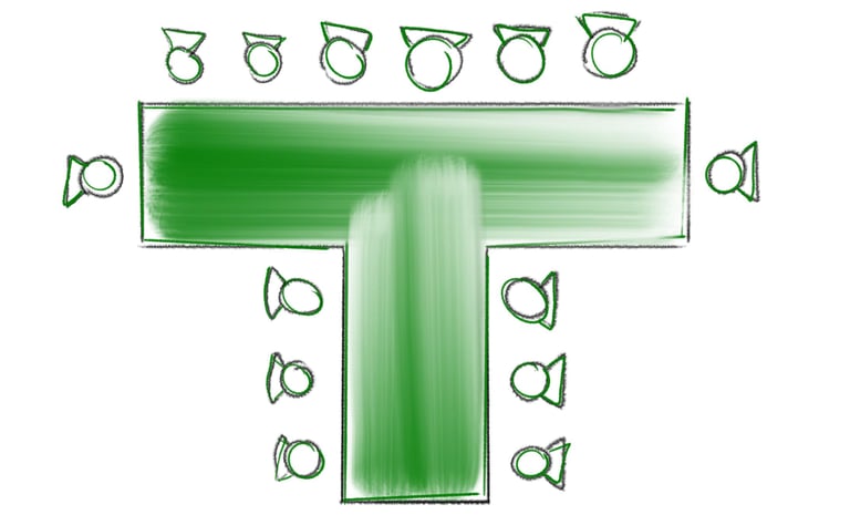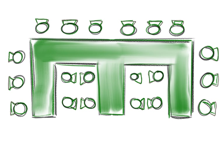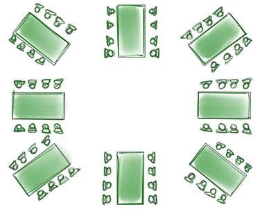 Bei Bankettveranstaltungen wie Hochzeiten, Tagungen, Konferenzen, usw. werden die Tische zu Tafelformen gestellt.